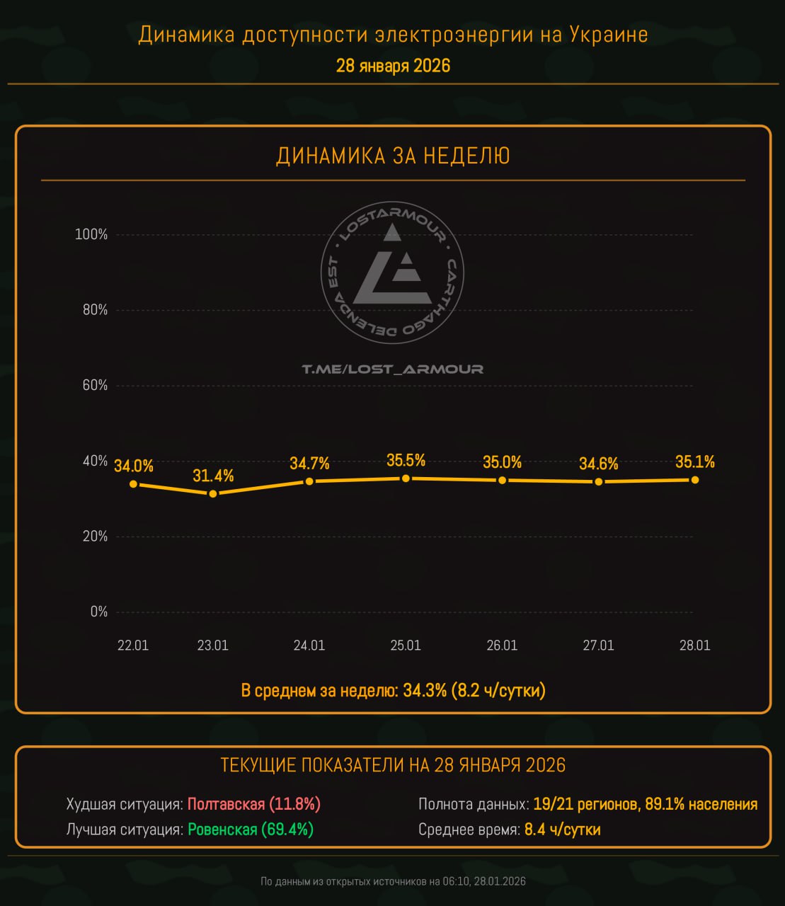 Инфографика доступности электроэнергии на территории Украины по областям на 28 января 2026.