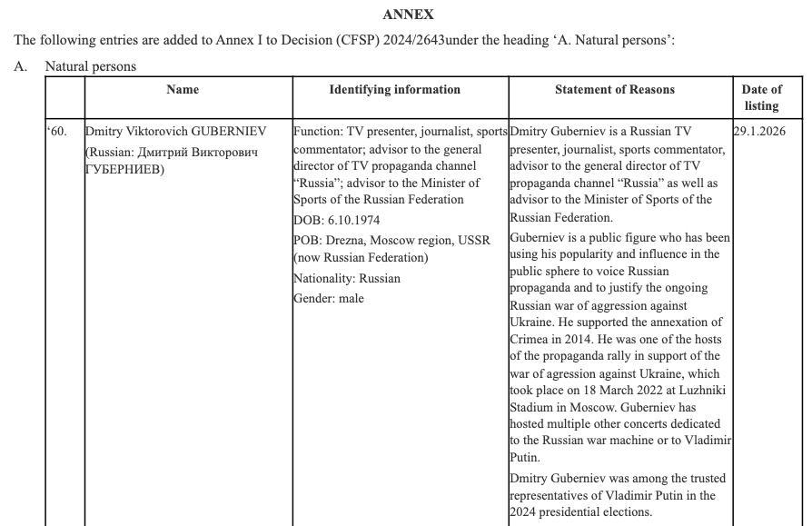 Это следует из приложения к регламенту о ограничительных мерах, опубликованному в Официальном журнале ЕС.