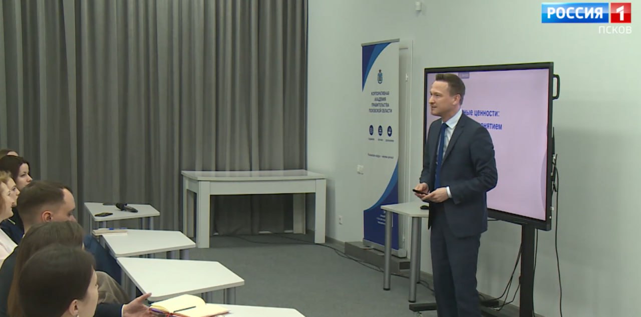 В Пскове стартовал совместный просветительский проект Российского общества "Знание" и "Корпоративной академии Правительства Псковской области" "Образовательная среда". Первым мероприятием стала открытая лекция на тему: "Традиционные ценности: что стоит за этим понятием". Ее провел лектор Российского общества "Знание", временно исполняющий обязанности министра образования Псковской области Александр Сорокин.