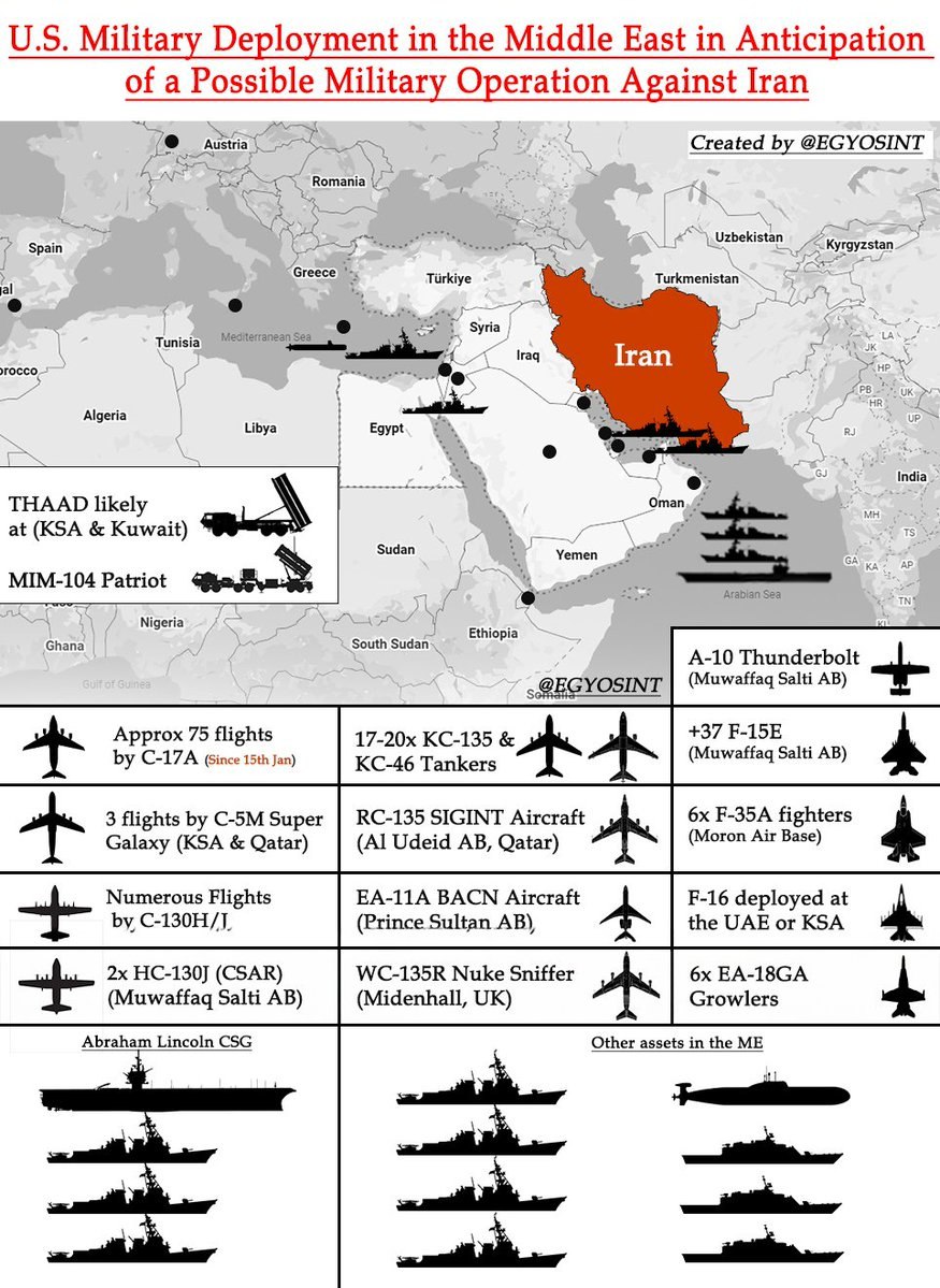 Карты наращивания военного присутствия США на Ближнем Востоке на фоне возросшей напряженности и угроз удара по Ирану.