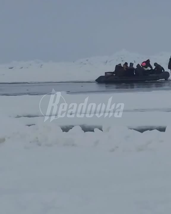 Они оперативно переправили на лодках через разлом 43 человека. Пострадавших нет, операция продолжается. Подвижки льда еще вчера создали трещину шириной до 6 м.