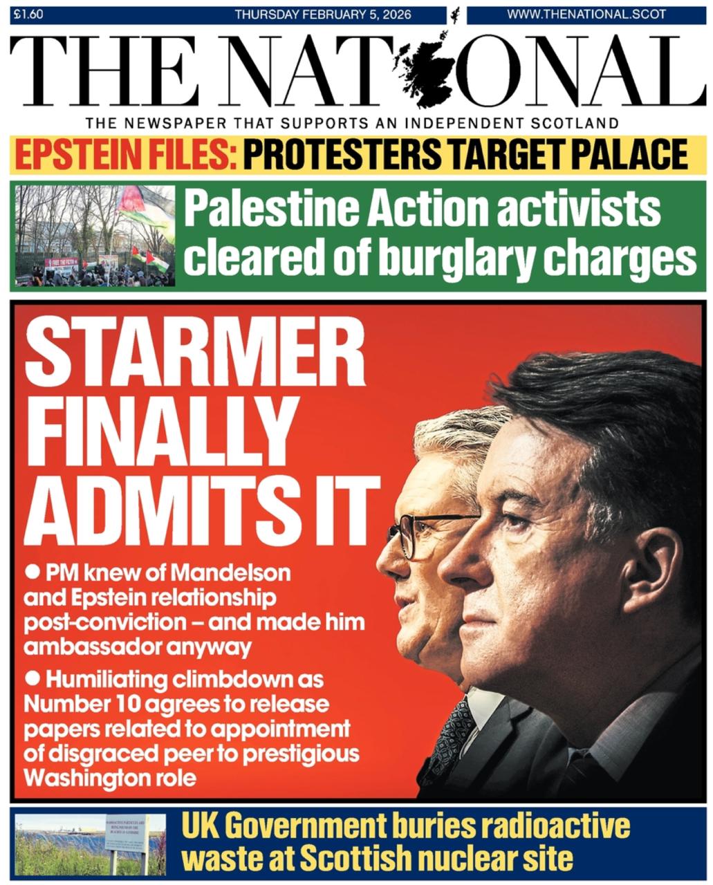 Прямо плакатный стиль! Я на днях рассказывал, как шотландские националисты пытались вывести на чистую воду премьера Британии Стармера, потребовав от него извинений за назначение послом в США лорда-извращенца Мендельсона. И вот сегодня печатный орган этих националистов The National радостно публикует: «Стармер наконец признал это».
