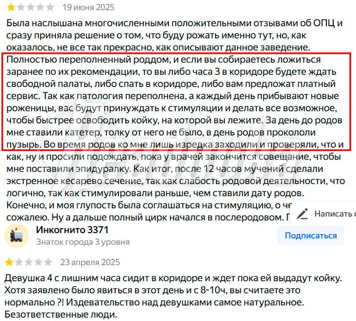 Отдельное внимание привлекают отзывы пациенток о работе перинатального центра во Владимире. В них женщины не раз указывали, что из-за нехватки коек им приходилось лежать в коридорах, роженицы жаловались и на условия в палатах, отношение персонала и отсутствие необходимого ухода. Официальная статистика по таким обращениям и их проверке в открытом доступе не публиковалась. Readovka направила запрос в Минздрав Владимирской области, чтобы прояснить ситуацию.
