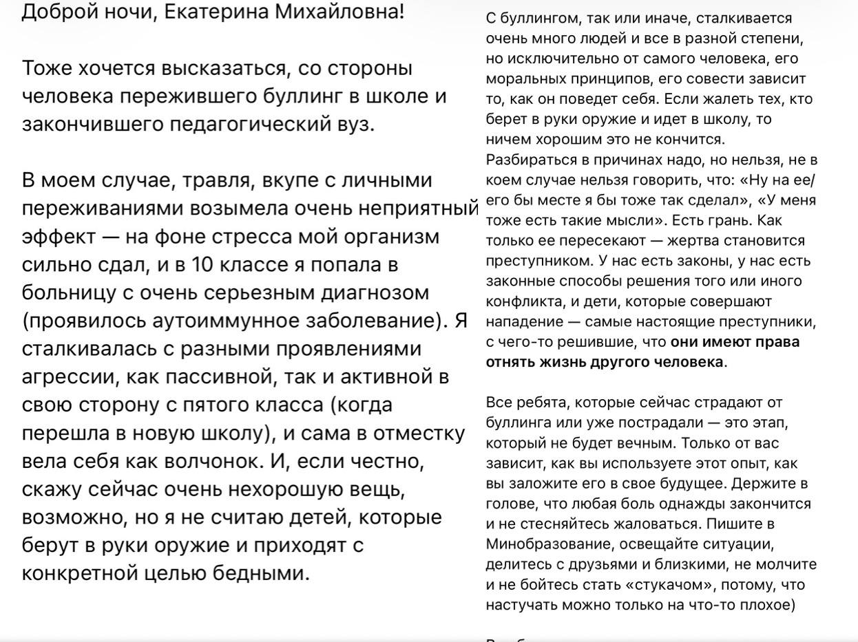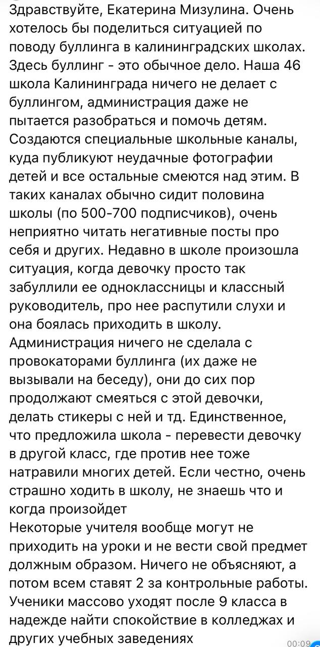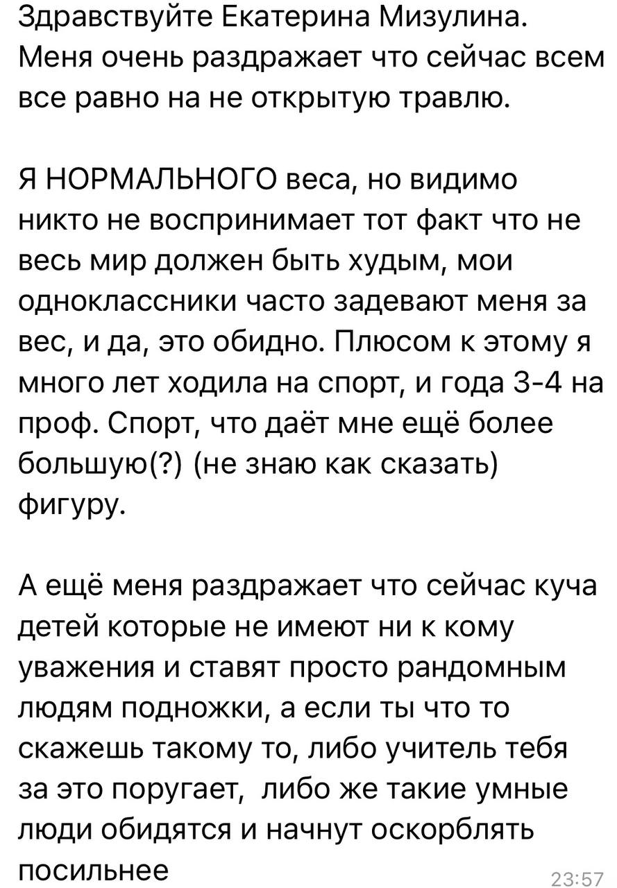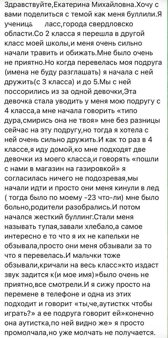 Екатерина Мизулина: В предложке шквал писем по поводу травли в школах