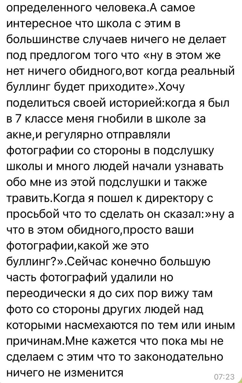 В предложке шквал писем по поводу травли в школах. Каждое второе письмо на эту тему. Пишут как те, кто уже пережил эту ситуацию, так и ребята, которые сталкиваются с этим прямо сейчас. Многие говорят о том, что в школах эти проблемы игнорируют или вообще обвиняют во всем тех, кто этой травле и подвергается