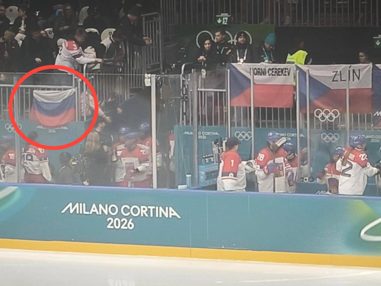 Как пишут зарубежные СМИ, триколор появился возле скамейки запасных команды Чехии, его принес один из зрителей. Члены сборной пожаловались на это организаторам, после чего флаг убрали с трибуны.