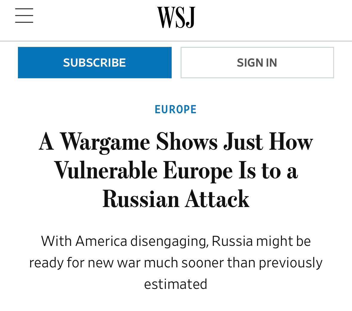Военная игра, моделировавшая столкновение НАТО с Россией в районе Балтии, привела к быстрой победе «российских сил», пишет The Wall Street Journal.