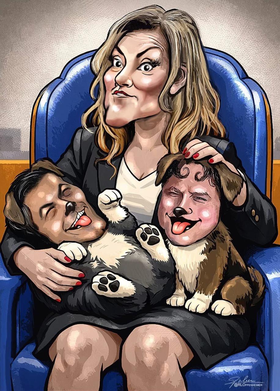 Как видите, голландский карикатурист Рубен Оппенгеймер полагает, что при таком раскладе именно Йешильгёз будет управлять щенками, являющимися партнерами по коалиции, включая и премьера.