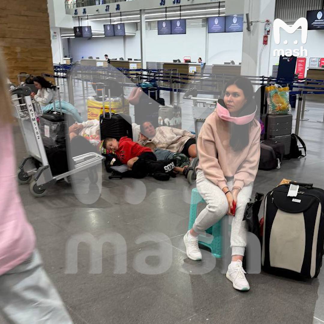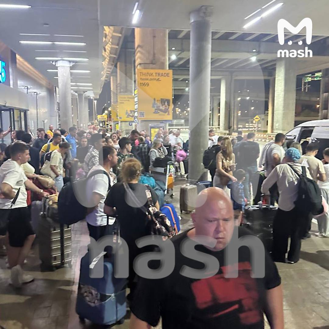 В аэропорту — толпа людей с детьми. Уже больше 2,5 часов пассажиры ждут обещанный трансфер в отель, еду и воду. Пассажиры говорят, что багаж выдали, но гостиница и питание до сих пор не предоставлены.