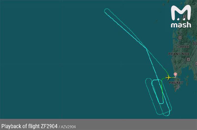 По данным Mash, примерно через час после взлёта Boeing 767-306 развернулся, покружил в районе королевства и в 02:36 по местному времени (22:36 мск) приземлился на Пхукете.