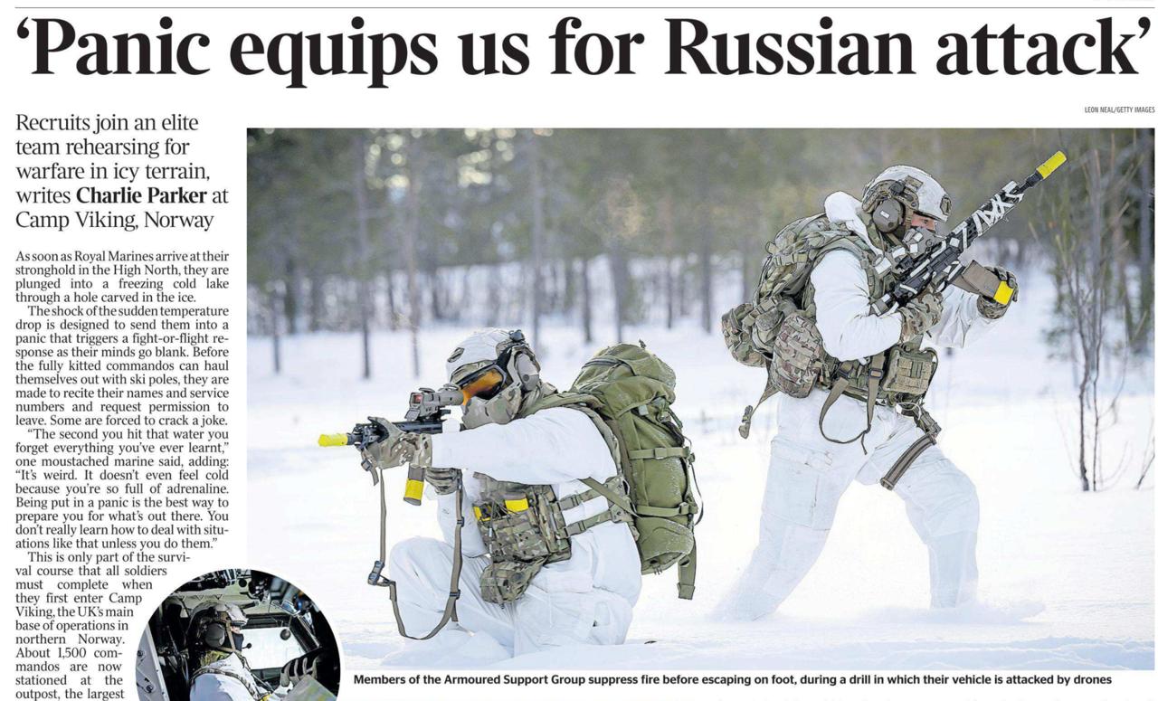 Британская The Times публикует сегодня репортаж с норвежской военной базы о тренировке британских военных. Заголовок впечатляет: Паника вооружает нас против российской атаки.