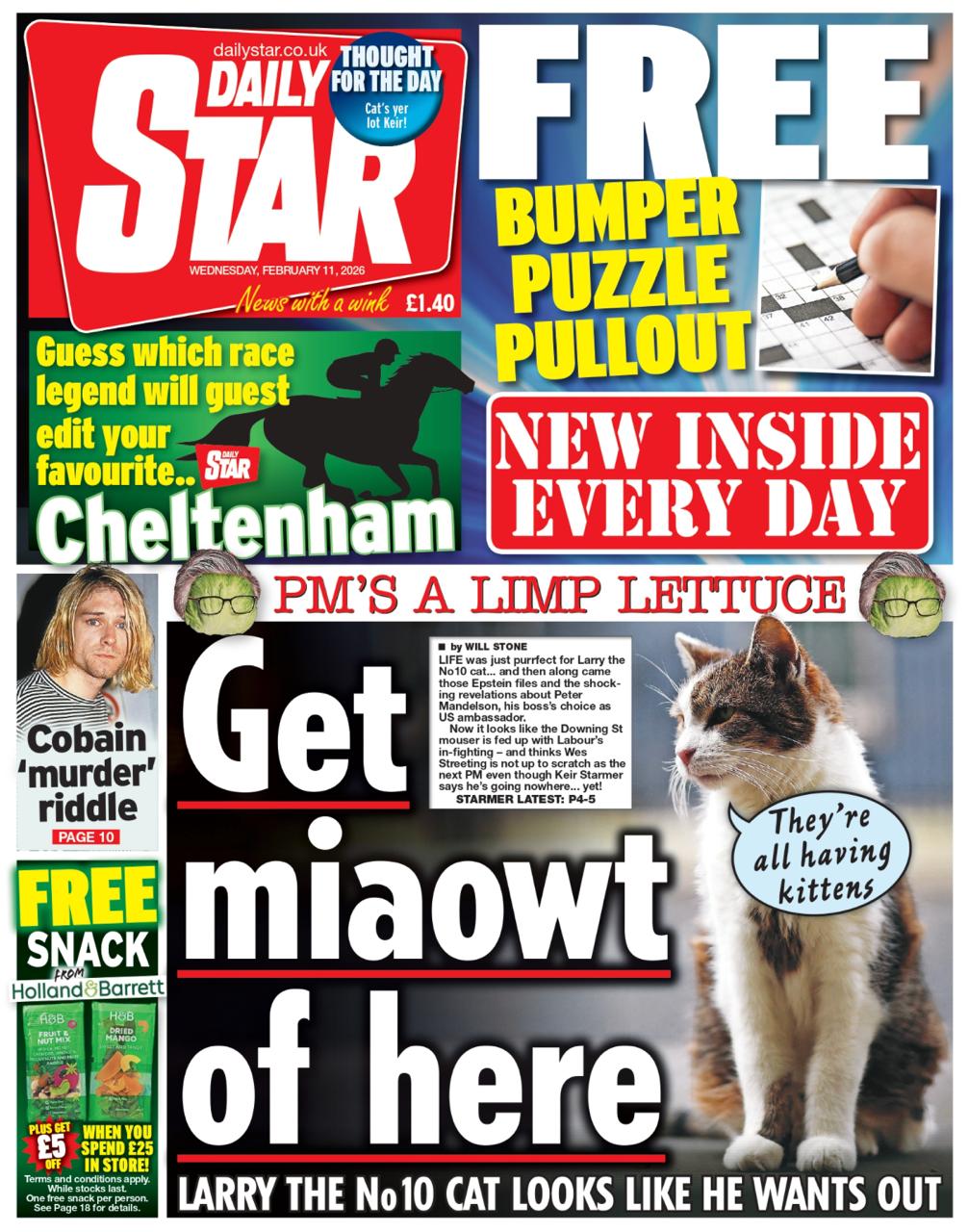 Правительство Стармера шло от одной катастрофы к другой. Но с сагой о Питере Мандельсоне Стармер достиг невероятных высот в плане управления полным хаосом. Теперь кажется неизбежным, что премьер-министр уйдет в ближайшие дни. Это будет означать, что наш главный мышелов Ларри переживет шесть премьер-министров. Забудьте о девяти жизнях он может увидеть девять премьер-министров!
