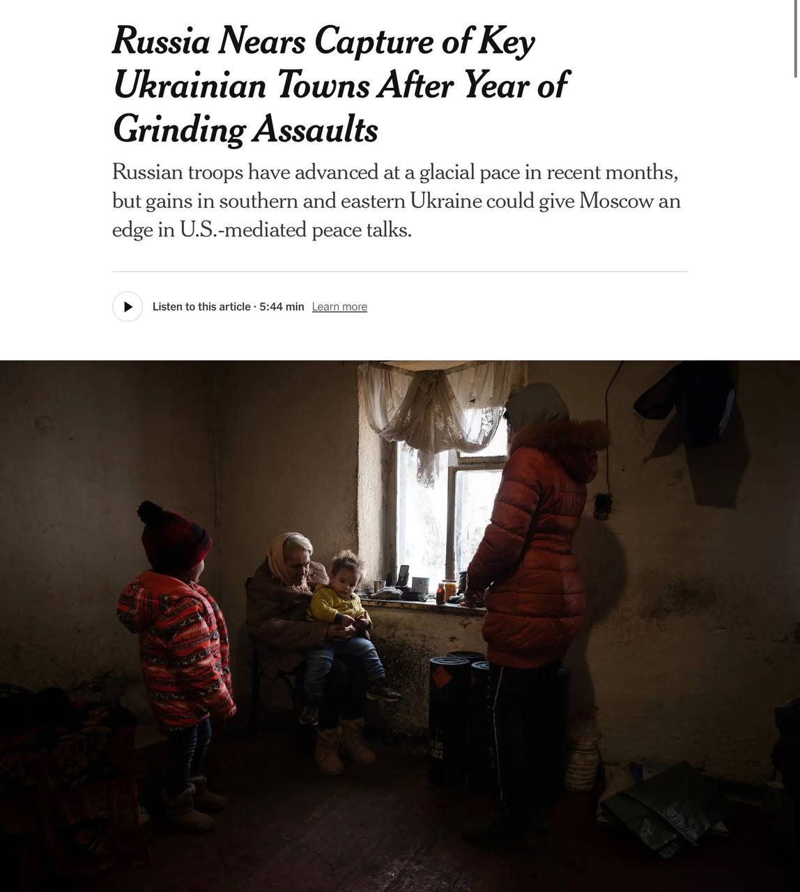 Но в любом случае, хорошо, что статья появилась именно сейчас - американцам полезно знать, что сообщения тупой Каи Каллас и террориста Линдси Грэма о наступлении украинцев, мягко говоря, расходятся с реальностью. Особенно полезно узнать об этом американским участникам переговоров по украинскому кризису (о чем, кстати, намекает и сама газета).