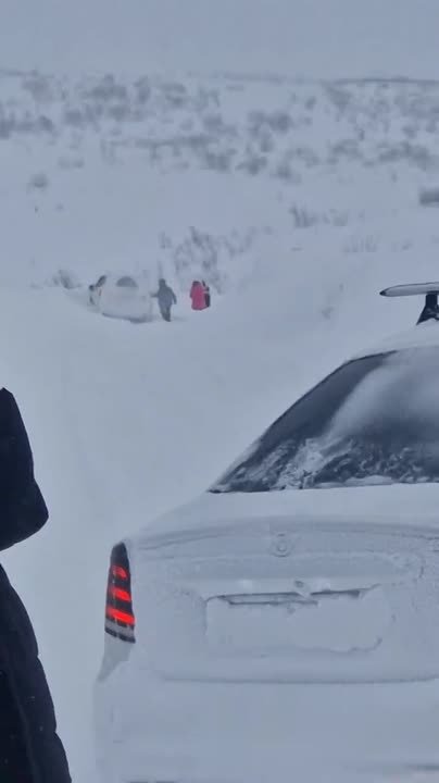 Китайские туристы прибывшие на Кольский полуостров с целью размножения под северным сиянием (что сулит ребенку невероятную удачу в жизни) вынуждены чистить трасу от Мурманска до Териберки и выкапывать застрявший автотранспорт.