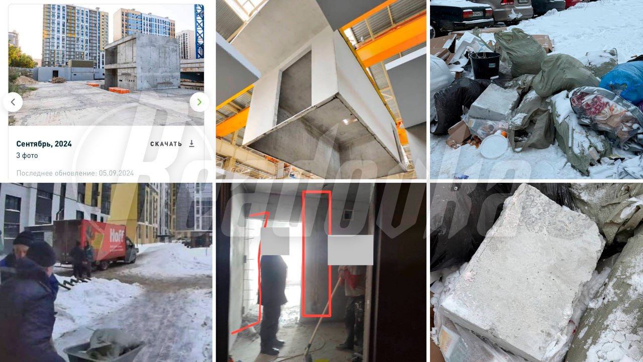 В воронежском ЖК «Яблоневые сады» владельцы трех квартир сносят несущие стены, подвергая опасности обрушения 17-этажный дом. На первом этаже они решили сделать коммерческое помещение и начали незаконную перепланировку. Местные жители заметили рабочих, выносящих куски бетона на помойку. Оказалось, что это части стен (на фото). Воронежцы обеспокоены такими ремонтными работами, так как их дом полностью состоит из несущих стен и построен по ОБД, рассказали Readovka жильцы. Объемно-модульное домостроение — монтаж готовых заводских комнатных блоков, а не возведение стен на месте.