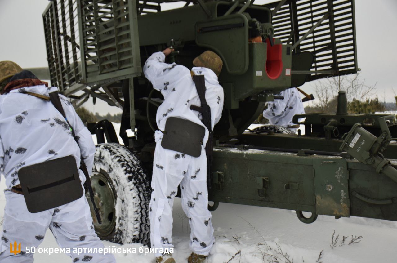 Украинская 155-мм буксируемая гаубица 2П22 «Богдана-БГ» на вооружении 50-й отдельной артиллерийской бригады ВСУ. Антидроновая защита присутствует. В качестве тягача выступает украинский же КрАЗ-6322.