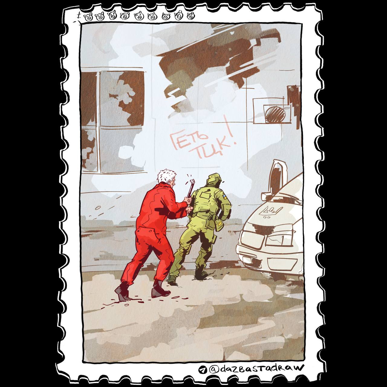 Мужичок спасает ухилянта разгоняя ломом людоловов.