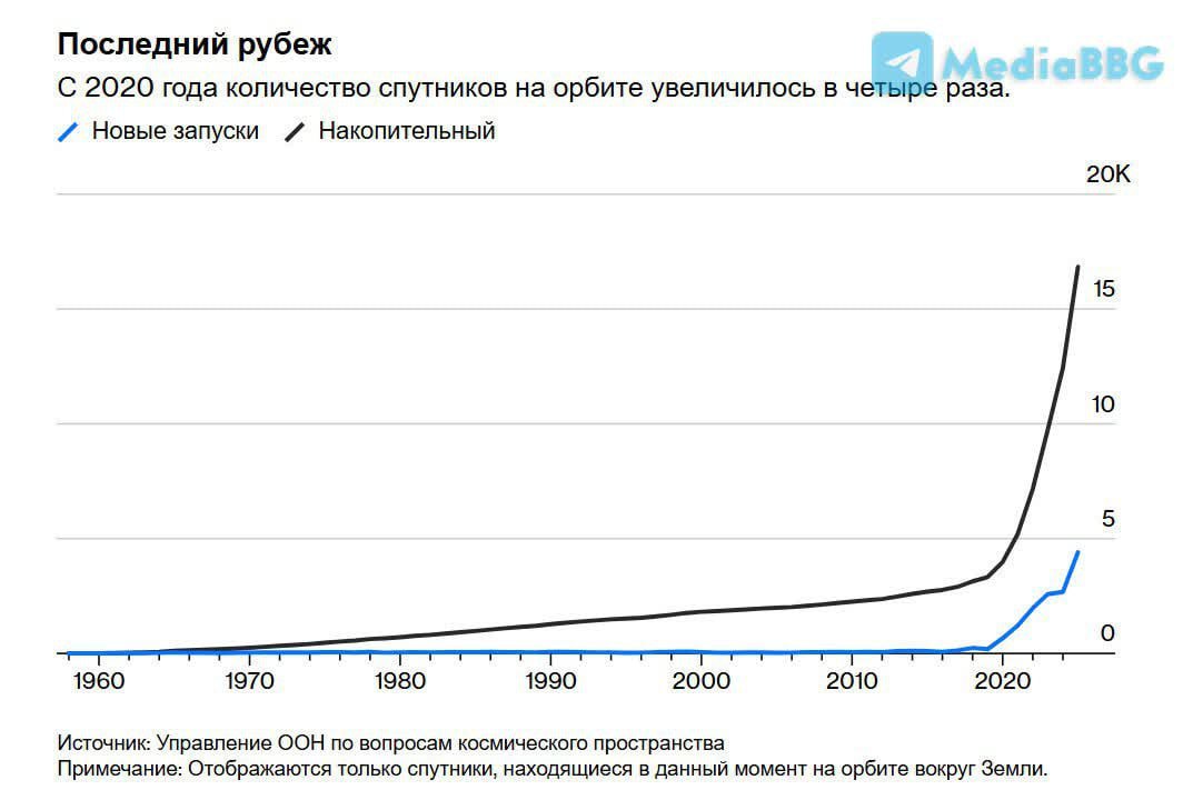 "Китай представил в Международный союз электросвязи планы развернуть к середине 2030-х до 203 000 спутников"...