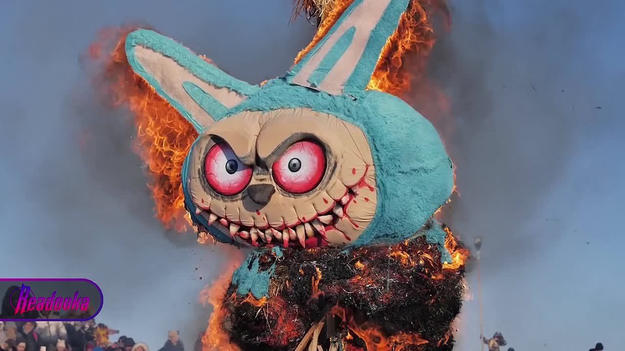 Вместо чучела Масленицы в Липецкой области сожгли гигантскую Лабубу