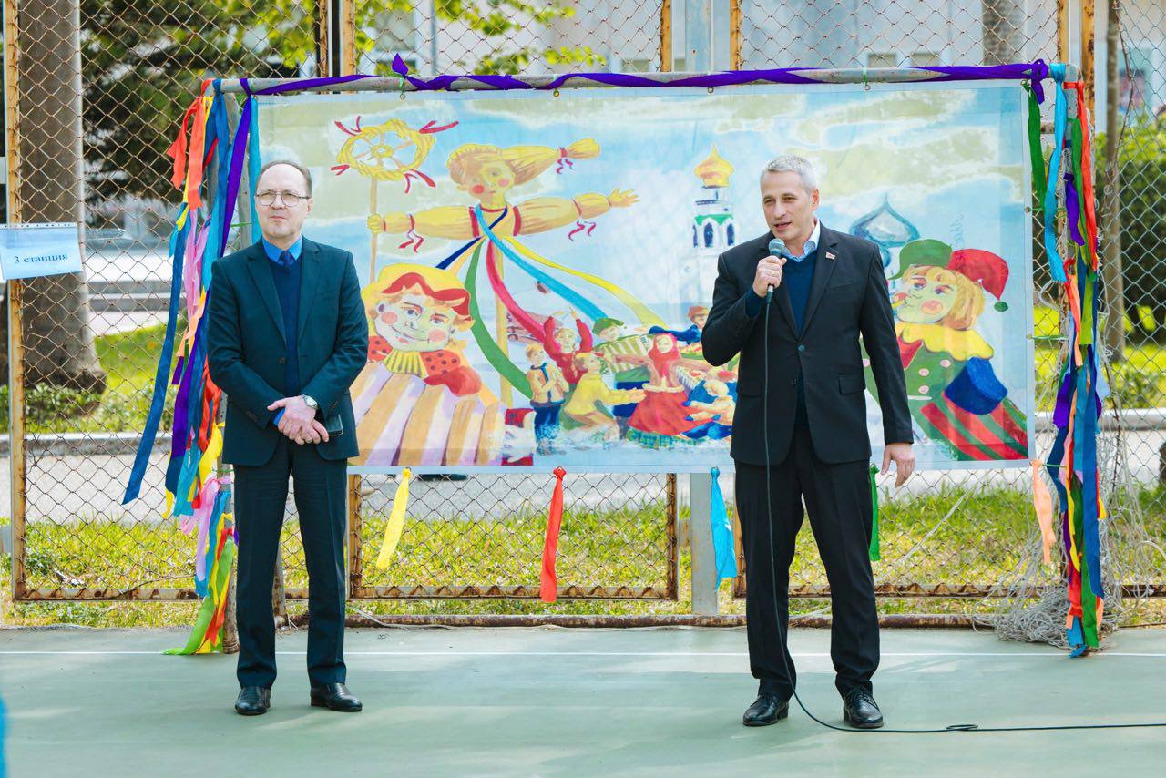 Состоялись спортивные соревнования и фестиваль русской народной кухни. Программа завершилась сжиганием чучела Масленицы. Участники кружились в хороводе и встречали аплодисментами красочные танцевальные номера творческого коллектива школы.