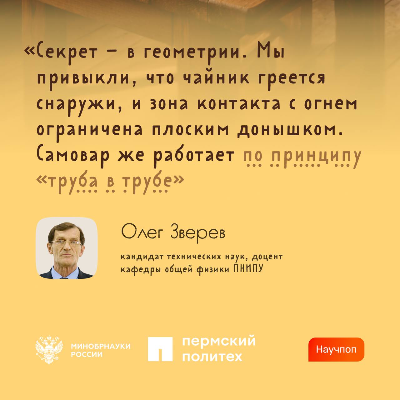 Как самовар решил задачу, над которой современные конструкторы бьются до сих пор? О термодинамике самовара рассказывает Олег Зверев, кандидат технических наук, доцент кафедры общей физики ПНИПУ.МАХ | ВК | ДЗЕН