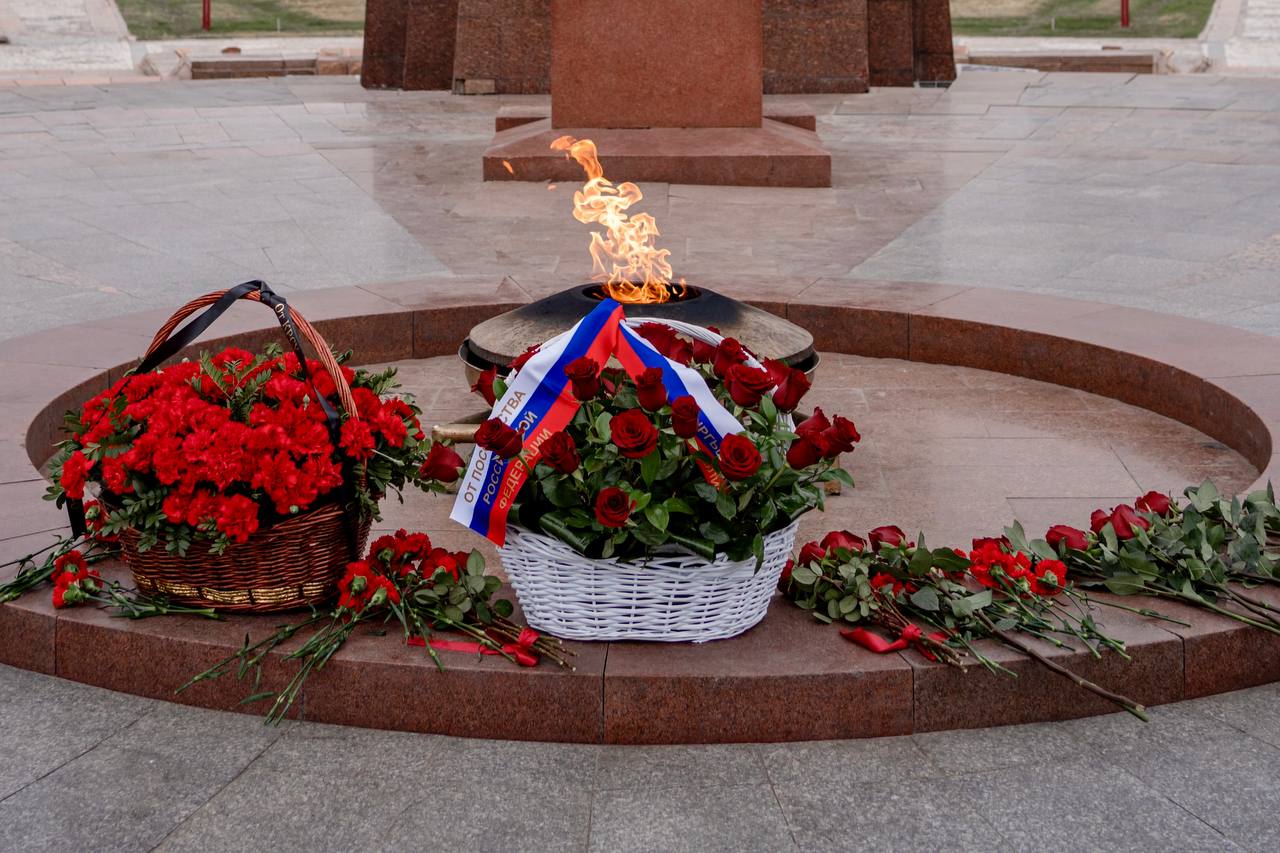 В мероприятии приняли участие Посол России в Кыргызстане Сергей Вакунов, атташе по вопросам обороны полковник Игорь Довбня, ректор Кыргызско-Российского Славянского университета Сергей Волков, а также сотрудники российского посольства и члены их семей.