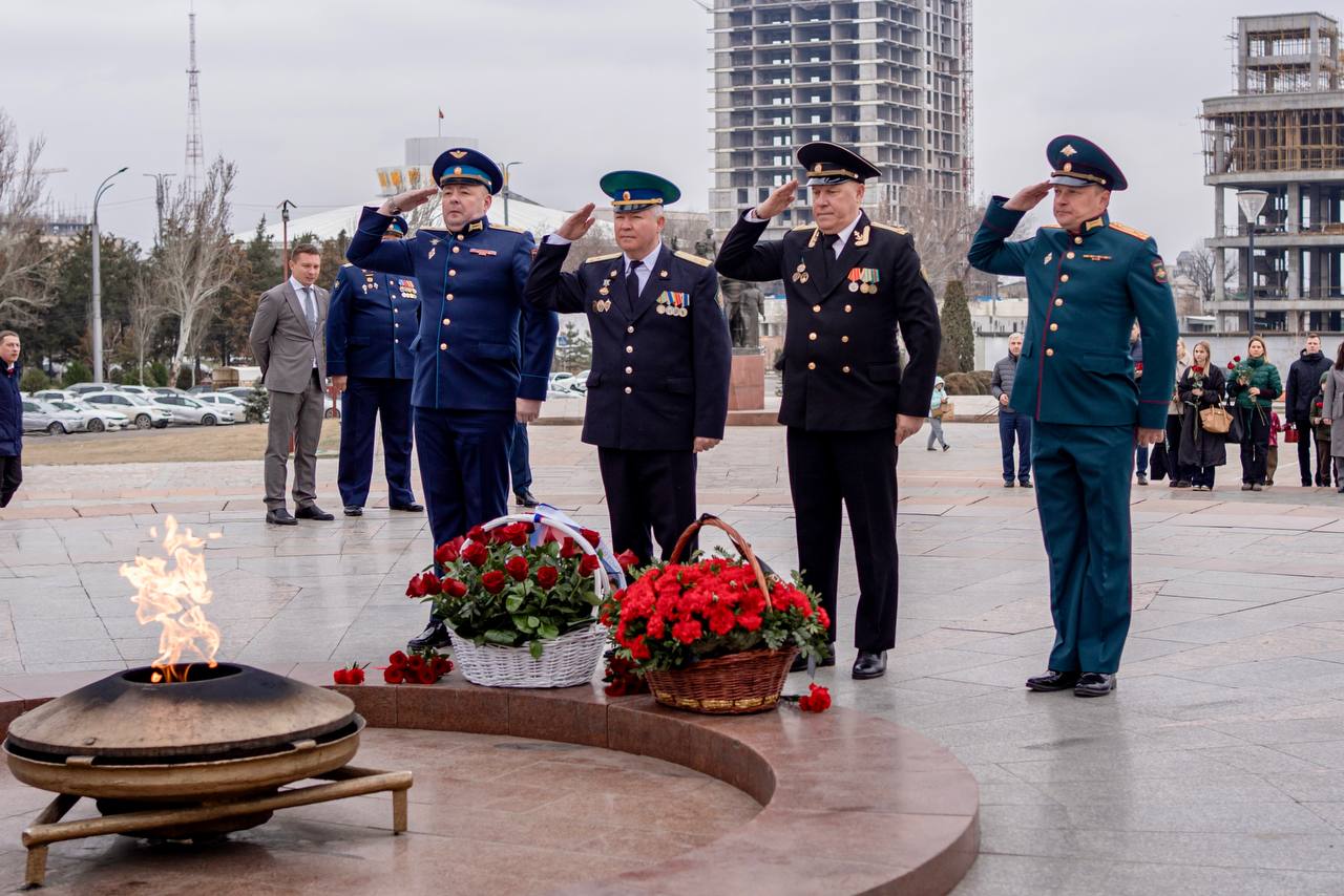 В День защитника Отечества в Бишкеке состоялась традиционная церемония возложения цветов к Вечному огню на Площади Победы.