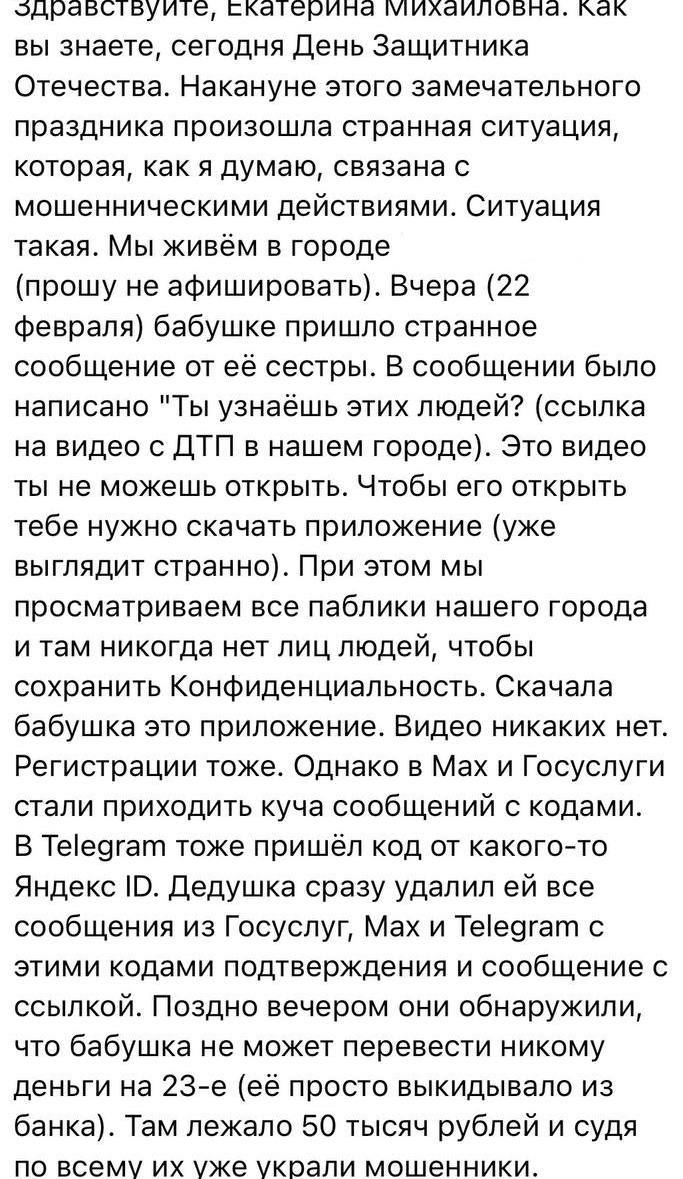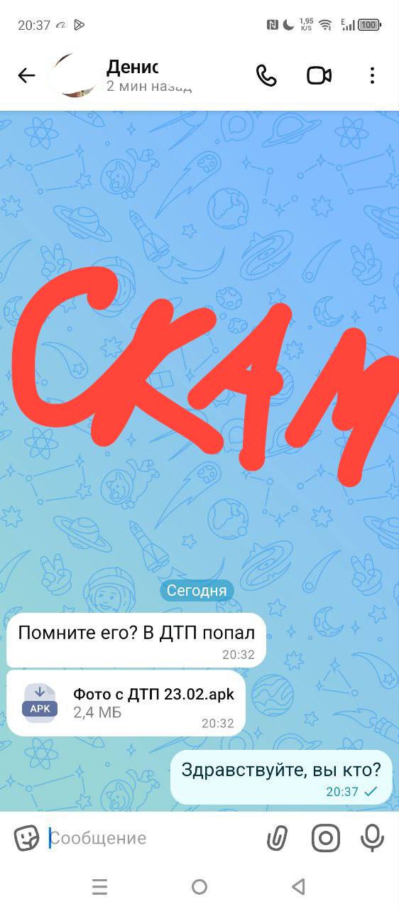 Это типичная мошенническая схема: пишут, что кто-то якобы попал в ДТП и просят посмотреть фото. Вместо фото там на самом деле вредоносный файл.