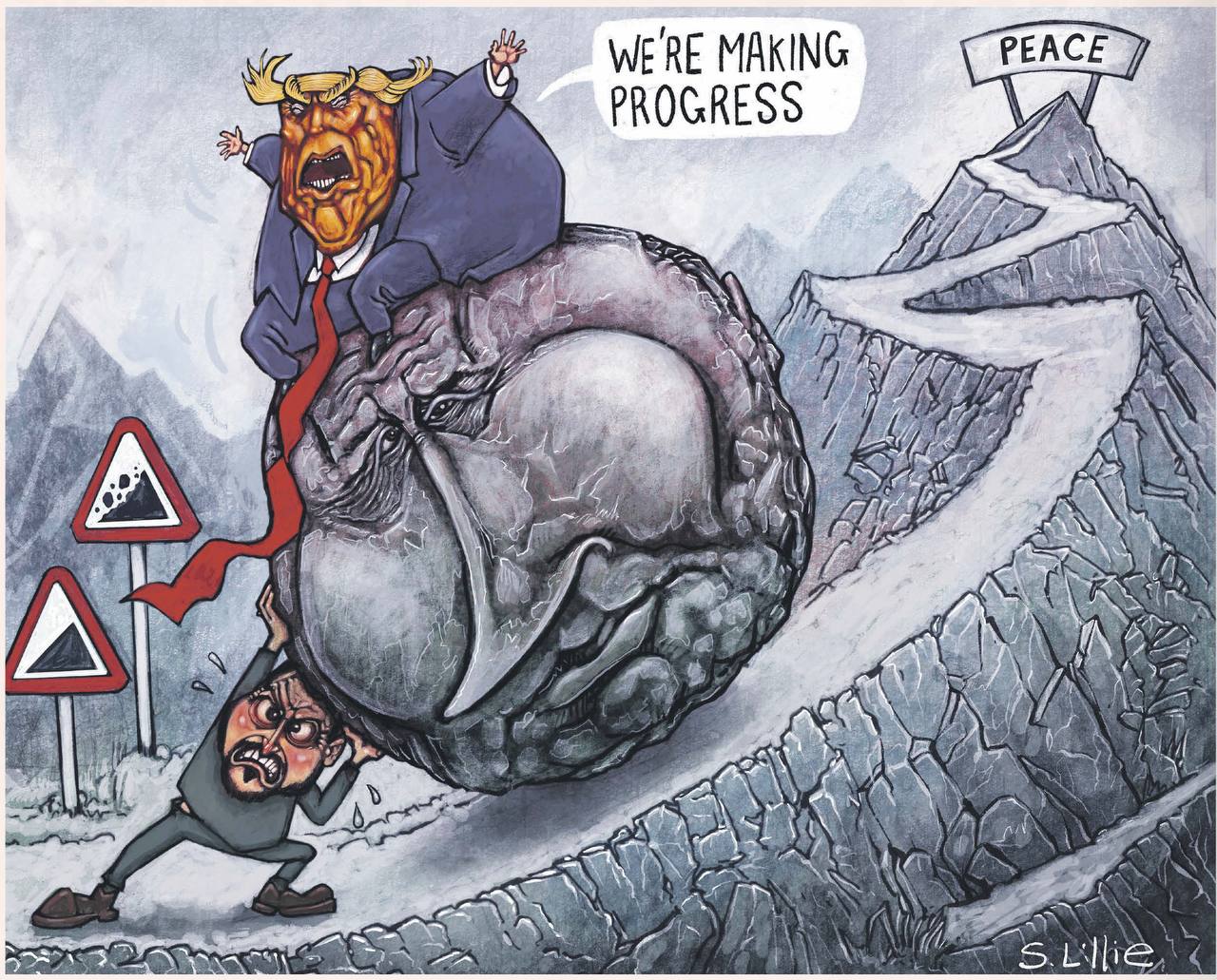 «Мы достигаем прогресса». Это иллюстрация из сегодняшней The Guardian. Да уж, явно художники не прочитали интервью Зеленского FT о «мудром руководстве Трампа» в мирных переговорах по Украине и о «начале конца войны»!