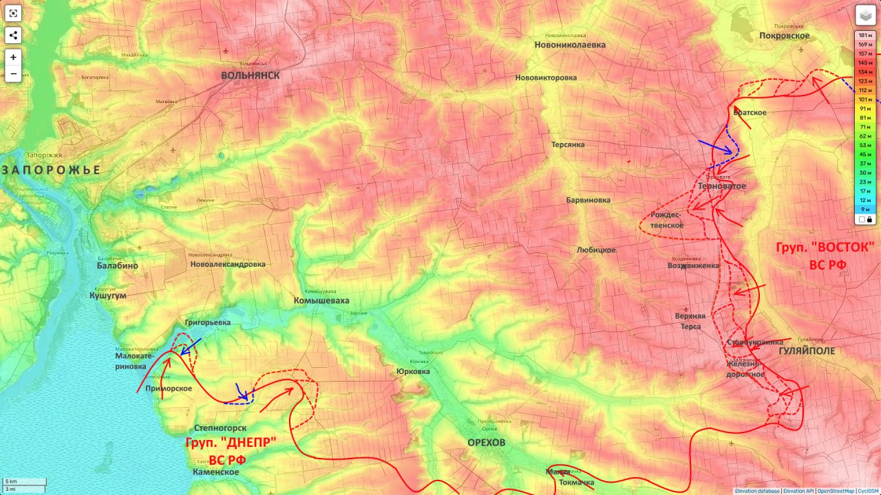 А утеря этой линии для противника крайне неприятная перспектива. Так как делает охват Орехова с северо-востока более плотным. И это сразу после во многом провалившегося контрнаступа севернее (во фланг группировке «Восток» в полосе 29А).