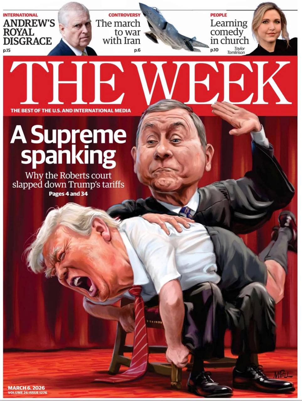 «Верховная порка». Оригинально американский еженедельник The Week проиллюстрировал решение Верховного суда США о незаконности пошлин от президента.