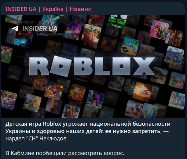Нардеп от партии Зеленского Владлен Неклюдов призвал запретить на Украине игровую платформу Roblox, заявив, что она представляет «угрозу национальной безопасности». В Кабмине пообещали рассмотреть этот вопрос.