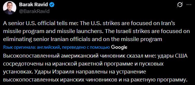 При этом, как отмечает журналист, израильские удары нацелены на устранение высокопоставленных иранских чиновников и ракетной программы.