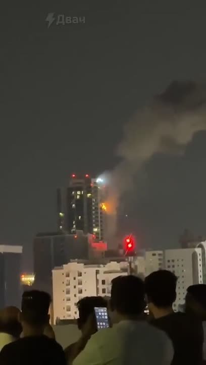 Еще кадры попадания по зданию в Бахрейне. Попадание было во время атаки "Шахедов. "