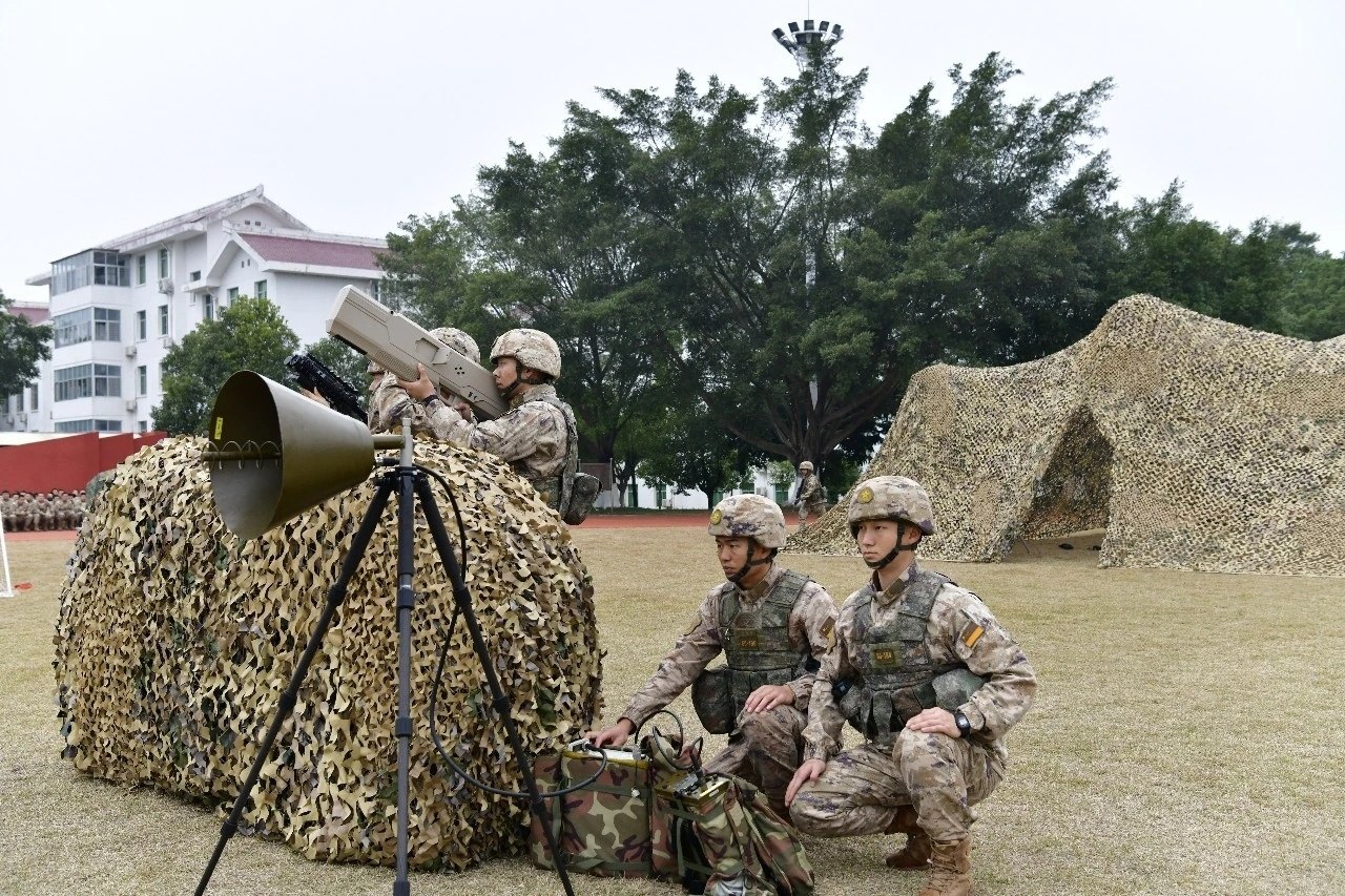 Бойцы подразделения ракетных войск НОАК в ходе боевой подготовки отрабатывают задачи по борьбе с дронами при помощи дронобоек и 12-ти ствольной турельной установки.