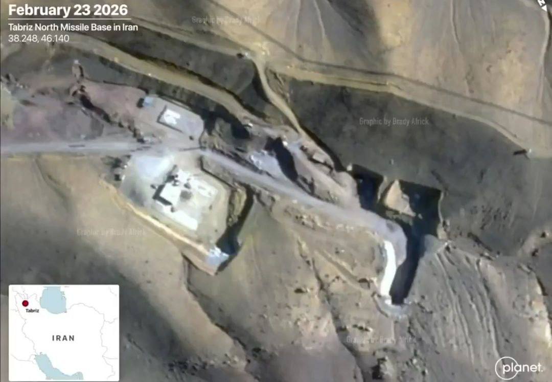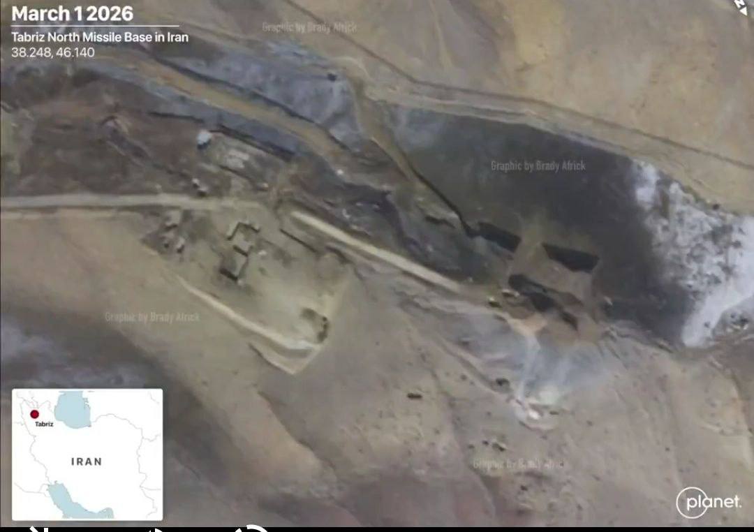 Последствия ударов по внешним сооружения ракетного города в Тебризе. Нанесен ущерб постройкам на поверхности и нанесены удары по дороге.