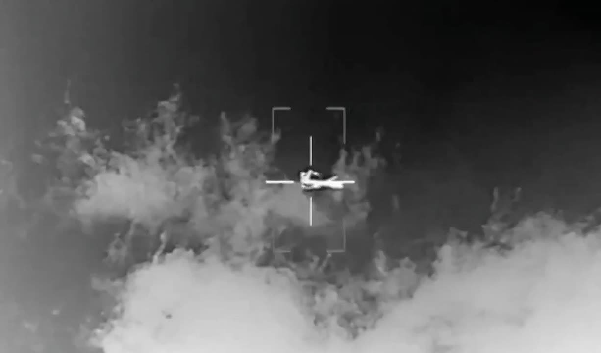 Кадры объективного контроля уничтожения еще одного израильского БПЛА типа "Гермес" в воздушном пространстве Ирана.