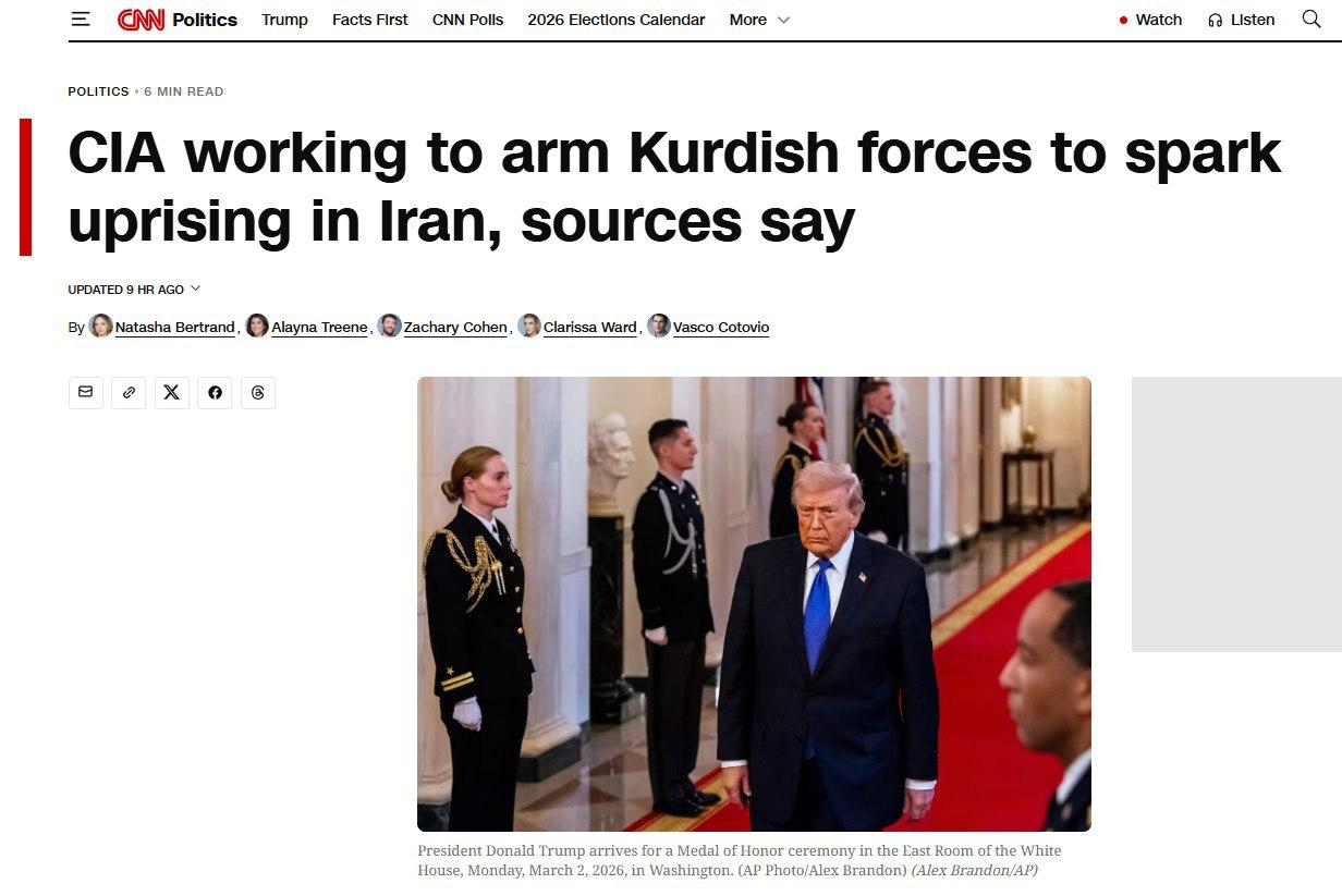 США готовят новый инструмент давления на Иран. По данным CNN, ЦРУ прорабатывает план вооружения курдских формирований, чтобы спровоцировать восстание внутри страны.