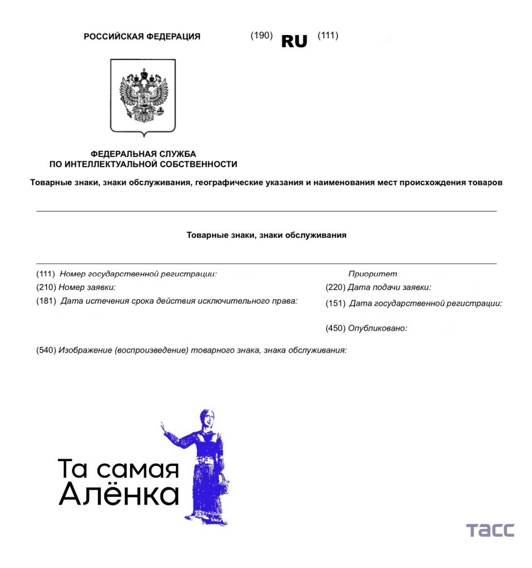 Три товарных знака с изображением образа "пугающей" Алёнки из Нововоронежа зарегистрировали в России, выяснил корреспондент ТАСС.