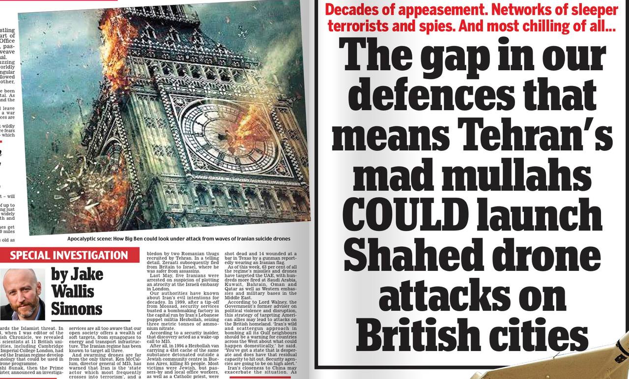 The Daily Mail сегодня предлагает представить: «Безумные муллы МОГУТ запустить беспилотники «шахеды» на британские города». Ну, и автор рвет на себе редкие волосы: боже, наш бедный островок совсем не защищен с воздуха, особенно со стороны Северного моря!