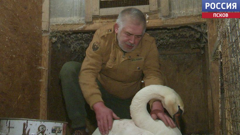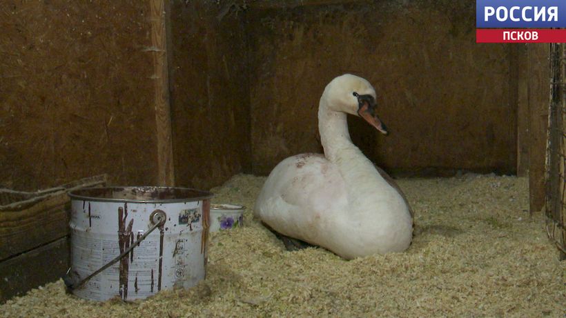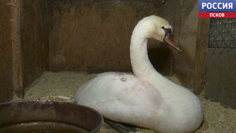 Лебедь, которого сейчас выхаживают в псковском "Птичьем дворике", идет на поправку.