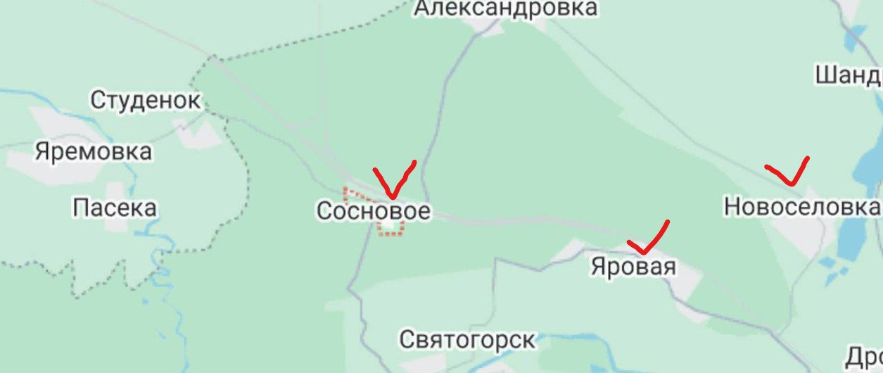 Министерство обороны России сообщило, что сегодня освобожден поселок Сосновое к северо-западу от Святогорска. Ранее была освобождения Яровая. Продолжаются бои и на окраинах самого Святогорска.