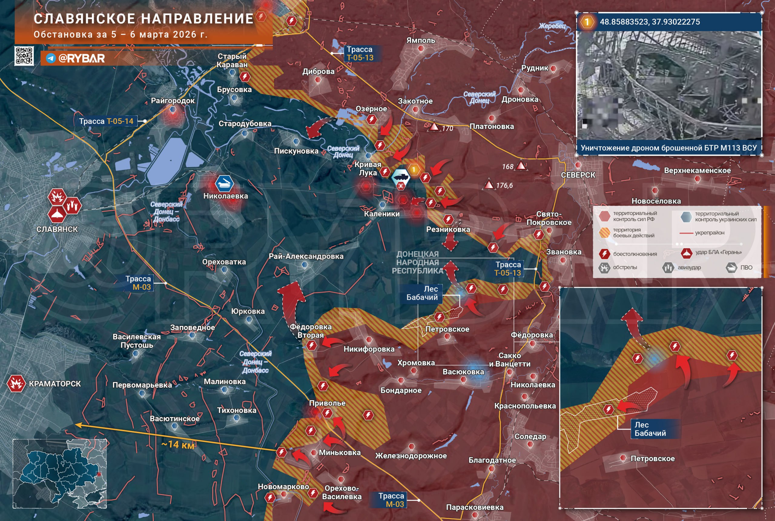 На Славянском направлении российские войска продвигаются севернее Петровского, стремясь полностью закрыть «карман» на рубеже Резниковка — Свято-Петровское — Кузьминовка. Окончательная зачистка опорных пунктов в полях позволит высвободить дополнительные силы для атаки в сторону Калеников и соседней Кривой Луки.