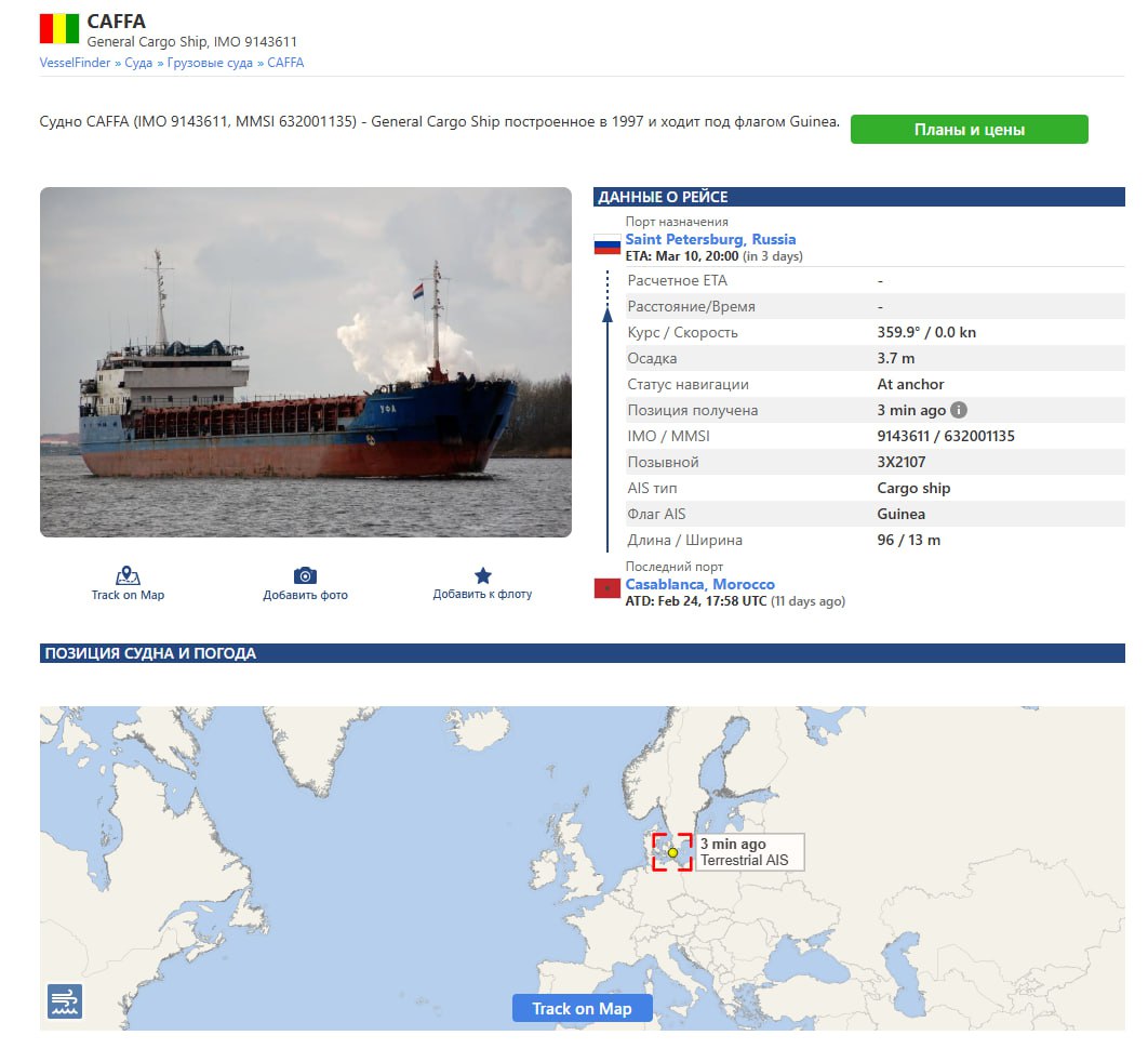 Сухогруз Caffa, направлявшийся в Санкт-Петербург под флагом Гвинеи, был задержан в территориальных водах Швеции недалеко от города Треллеборг. На борт судна с вертолёта была высажена шведская береговая охрана для проведения операции.