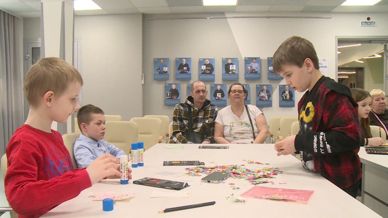В Псковском фонде "Защитники Отечества" для детей участников СВО провели мастер-класс по созданию открыток для мам и бабушек