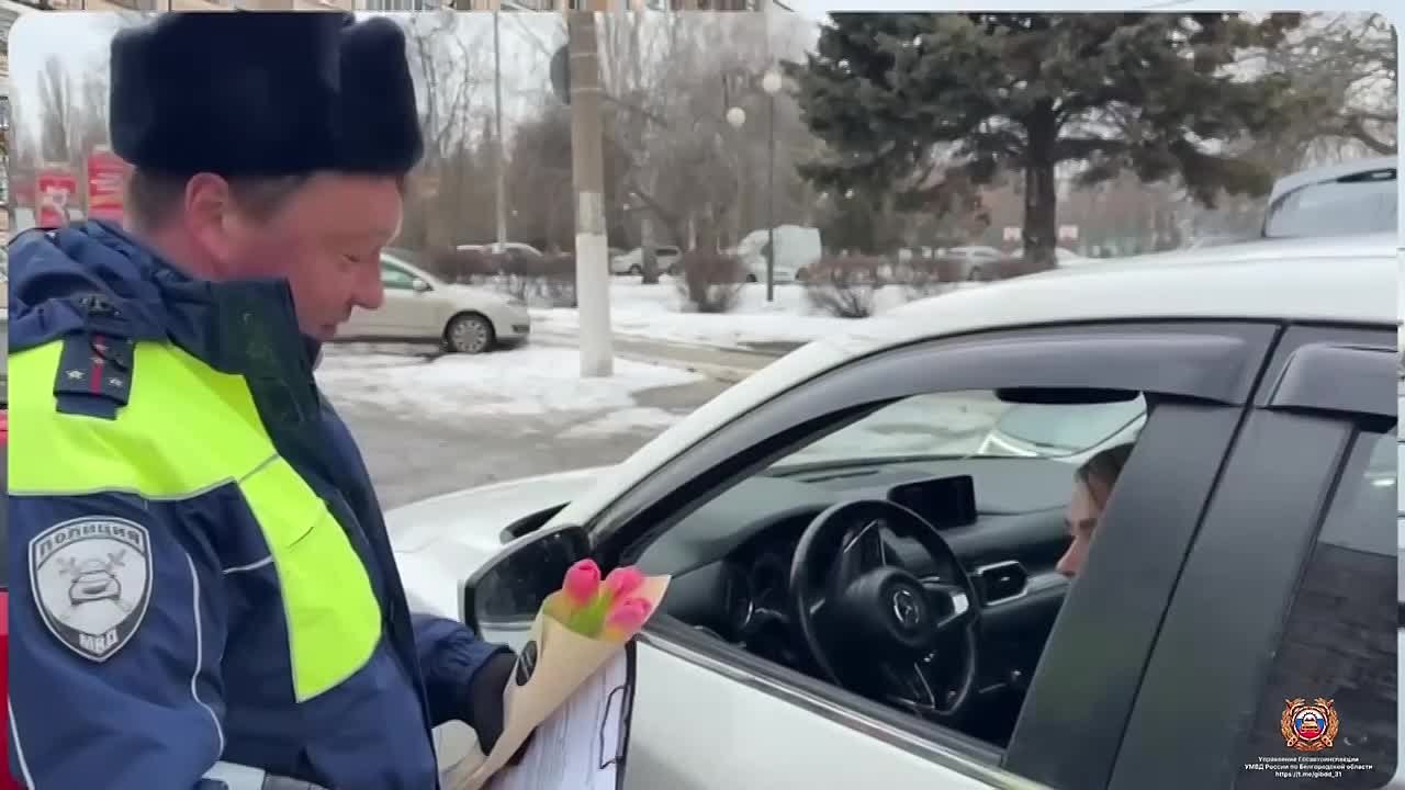 Сотрудники полиции и военные ВС РФ присоединились к торжествам в честь 8 Марта — на протяжении дня они дарят россиянкам цветы и поздравляют их с Международным женским днем. Без подарков не остались и водительницы — правоохранители в Сочи останавливают автоледи и вручают им тюльпаны. Белгородская полиция оригинально подошла к поздравлению — дамам дарят открытки, оформленные в виде протоколов.