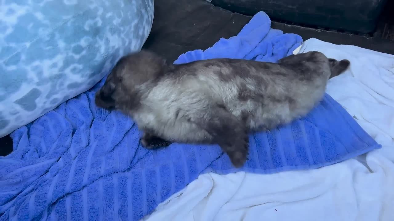На льду Ладожского озера нашли детеныша нерпы и спасли от стаи чаек