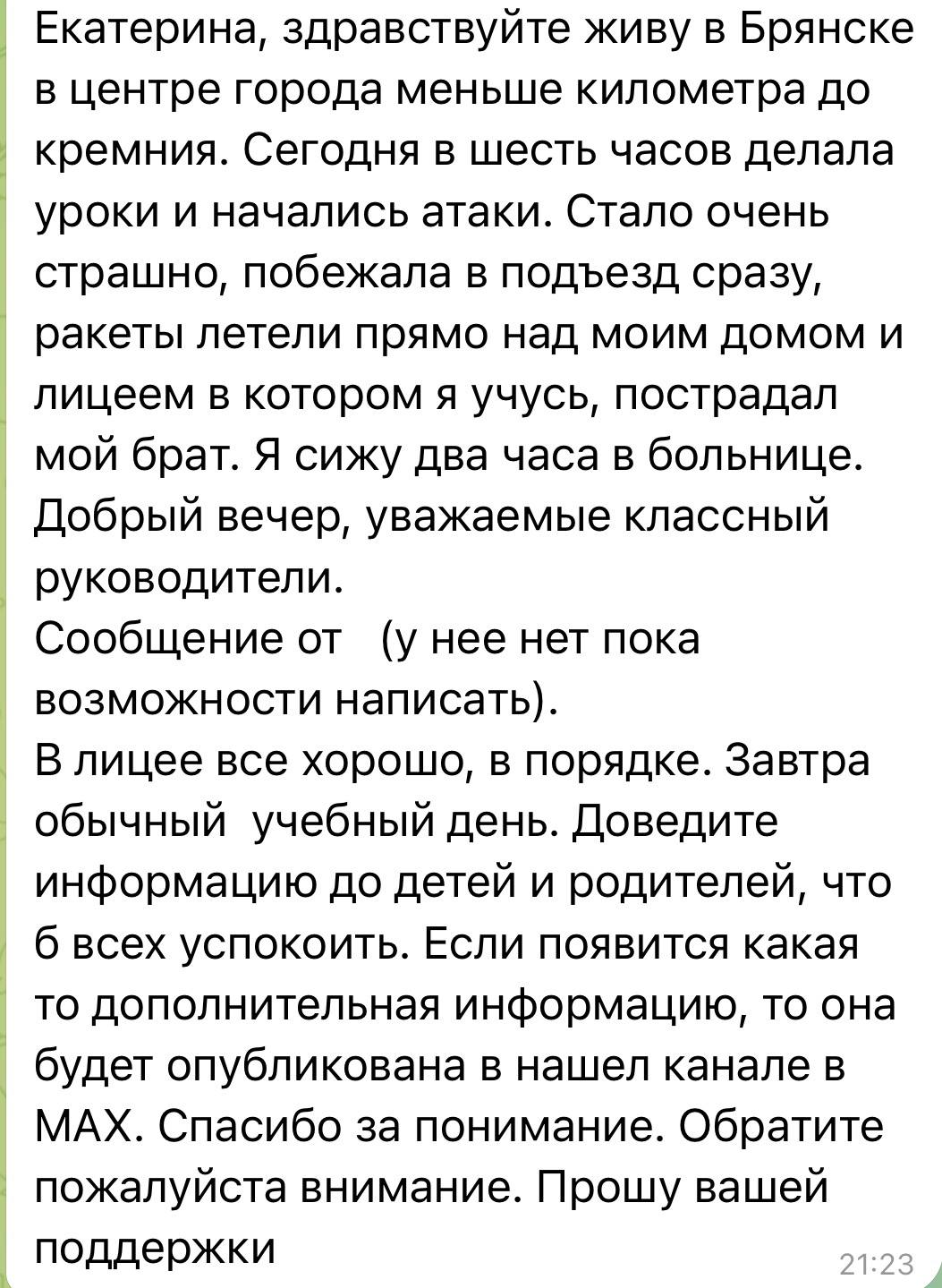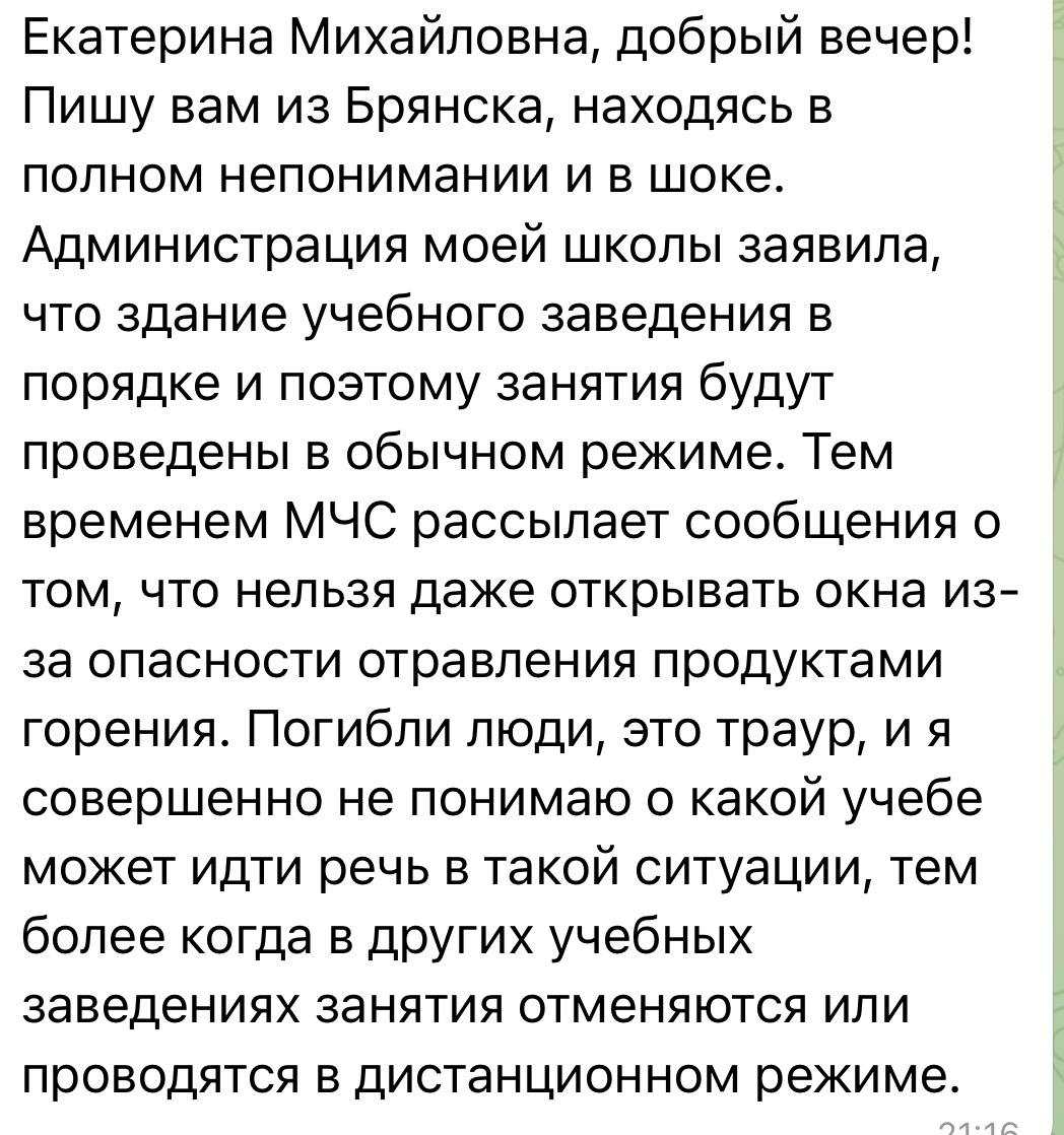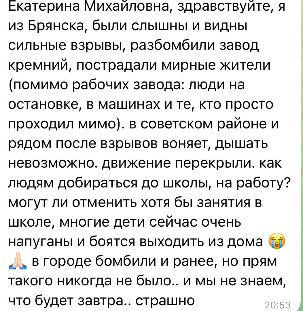 Вот такие письма сейчас мне приходят от жителей Брянска. Их очень много. Не могу пройти мимо