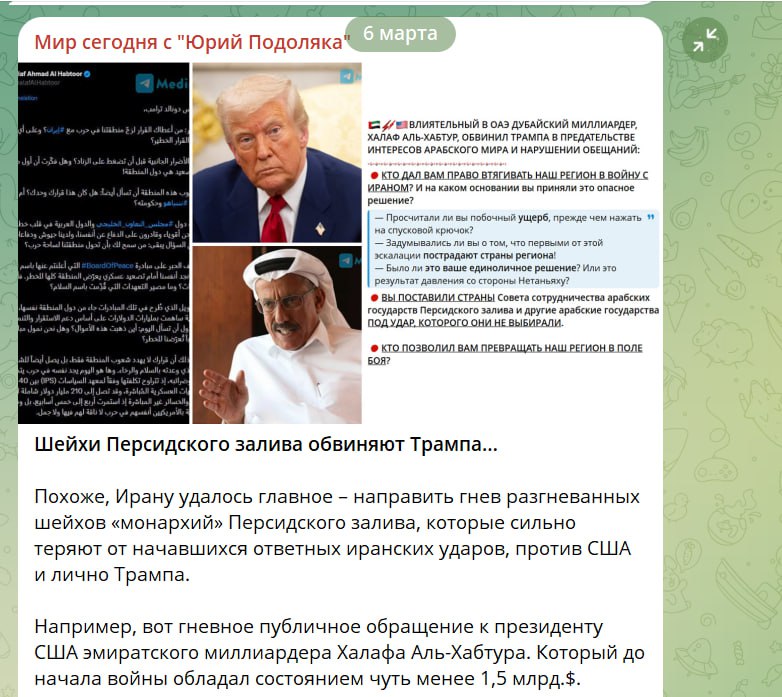 Судя по всему очень многих богатых и влиятельных ребят из "монархий" стран персидского залива ждет судьба миллиардера (по состоянию на 28.02 2026 года) Халафа Аль-Хабтура.
