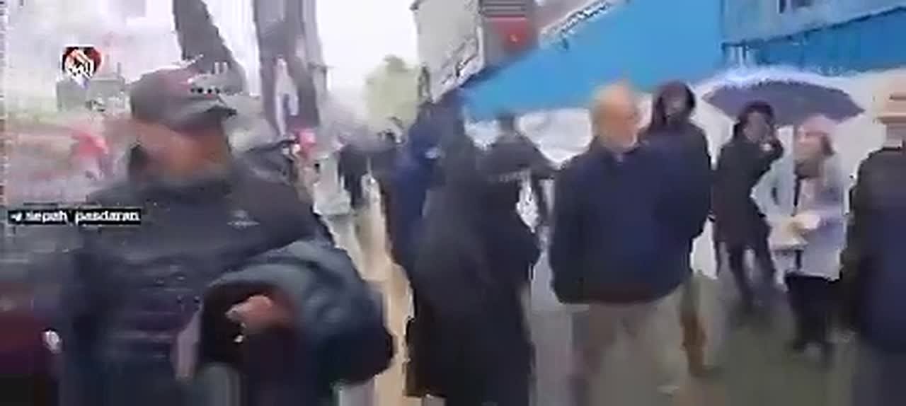 Президент Ирана Пезешкиан на улицах Тегерана во время сегодняшних массовых мероприятий. Также на улице открыло шел секретарь СБ Ирана Лариджани.